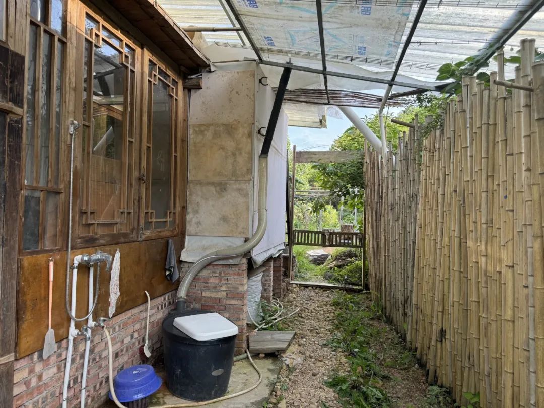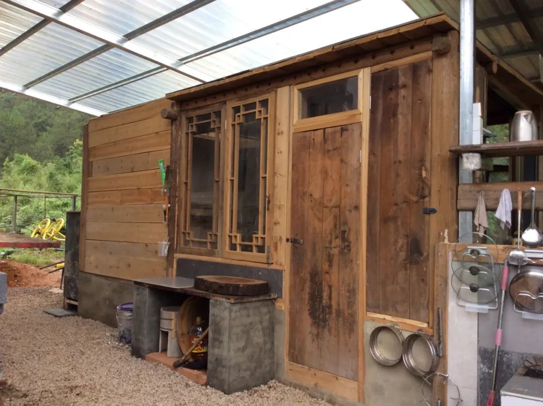 回到一开始的问题:“人需要多少空间?”除了十平方多一点的炕间和灶间,谷仓小窝外面,西窗外侧安放了旱厕,厕边空地还是一个露天浴室,又增加了大约两平方水泥硬化面积。如此,炕间、灶间、外挂壁橱、旱厕和露天浴室,加上硬化墙边,满打满算,15平米以内搞定。