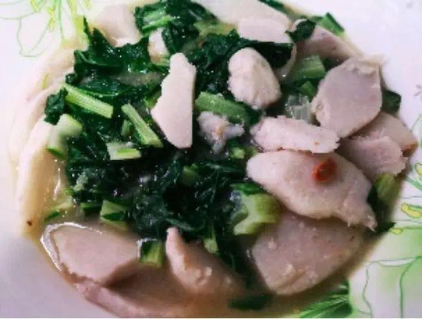 「红芽芋煮莙达菜」