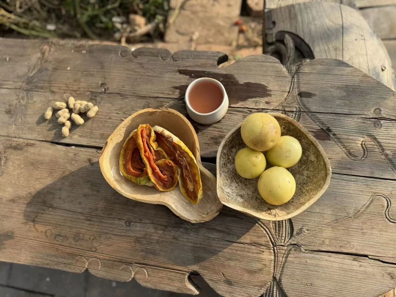 脱水晒透的南瓜干可以留很长时间,慢慢吃。天气预报明天出太阳,在大棚晒太阳翻闲书的时候,旁边放上最佳冬日搭档三件套:南瓜干+焙花生,配瑞岩米茶,南面王不易也。