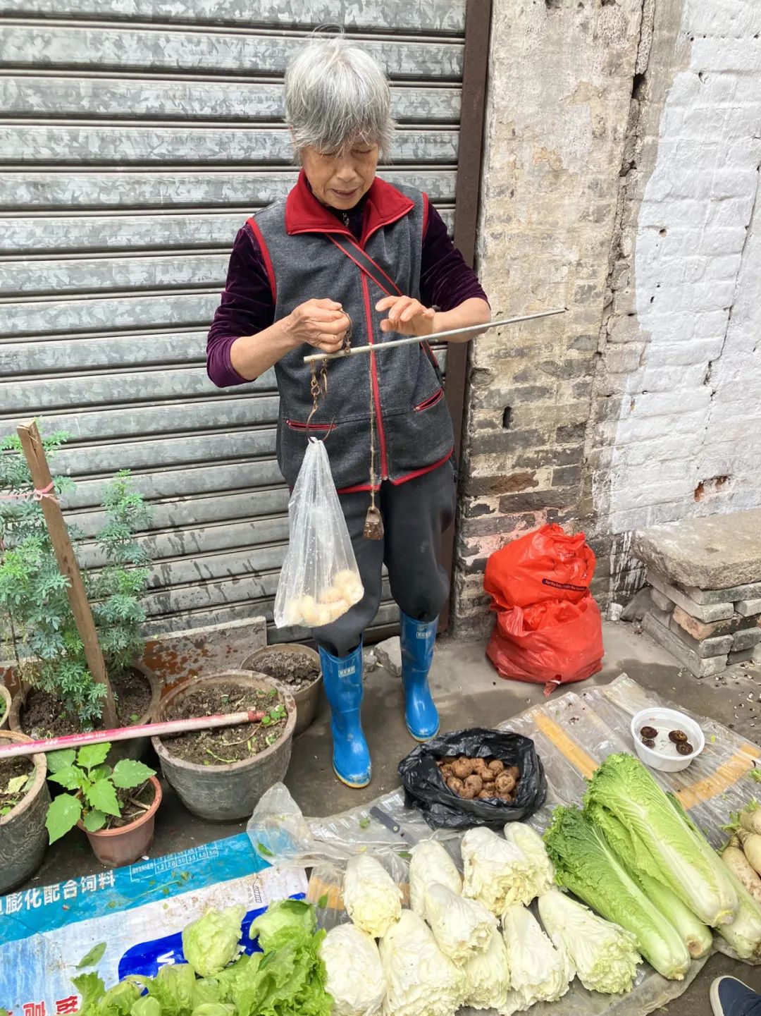 ●在佛山遇到的卖菜阿婆,一袋削好的荸荠才卖两元。