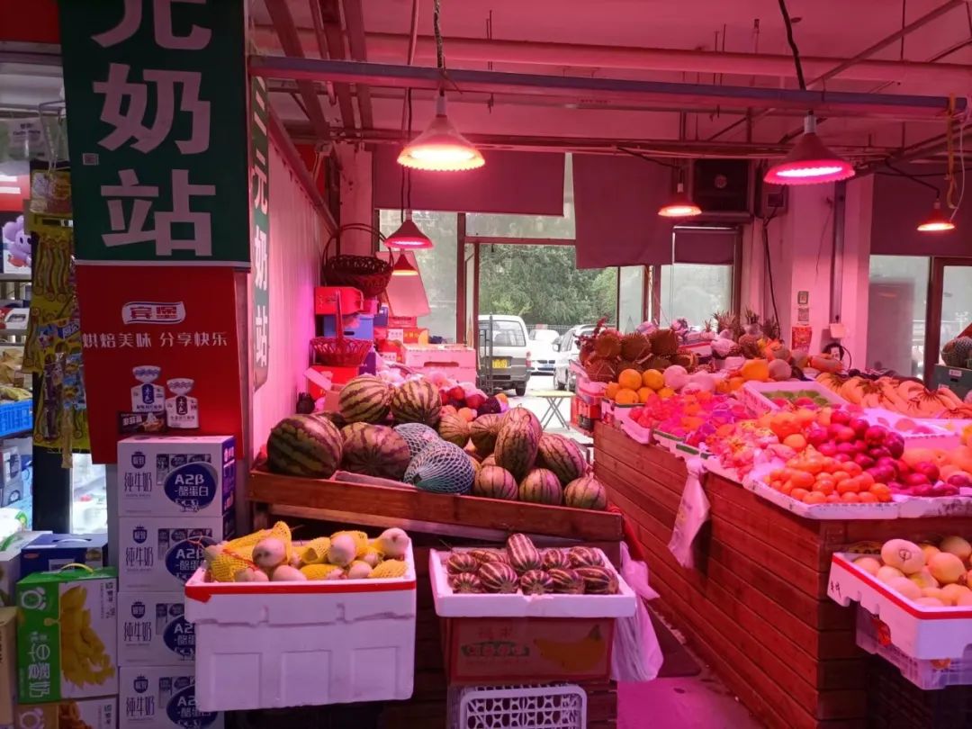 ●红彤彤的水果店,从街上远看如同“红灯区”。