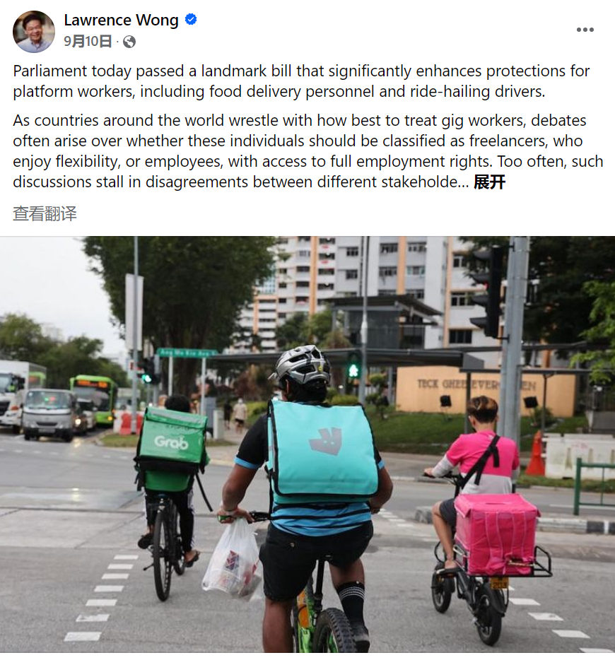 9月10日,新加坡国会正式通过《平台工人法案》,成为世界上最先为保护平台工人立法的国家之一。
