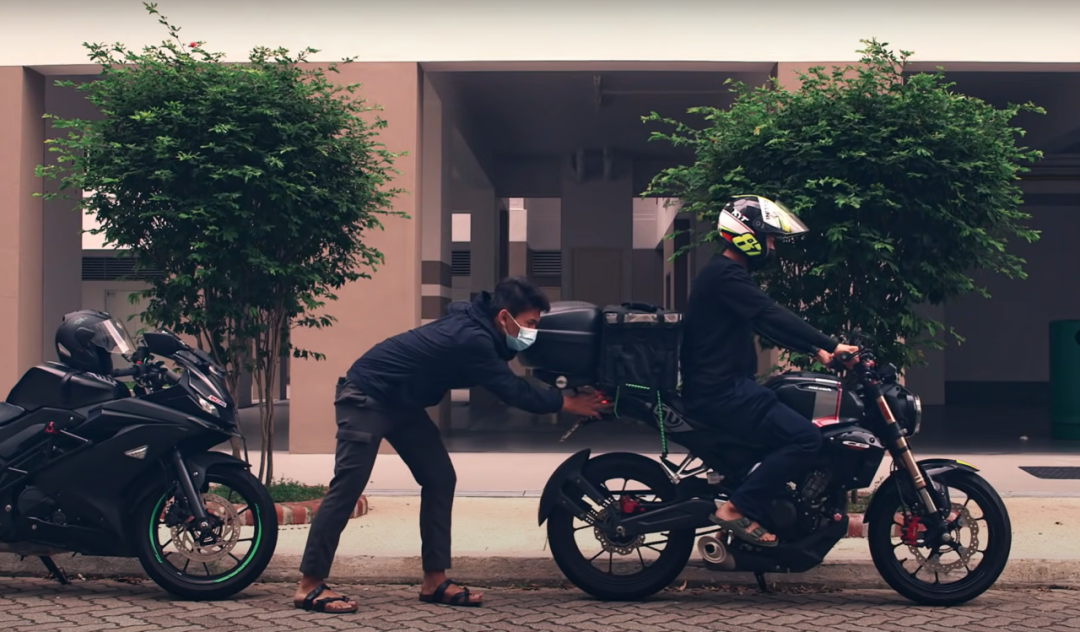 ●在短片Kejar中,年轻骑手主动帮助同行修理因故障而停在路边的摩托车。图源:视频截图