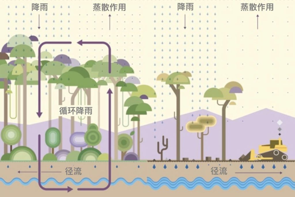 欧洲殖民者最初想在亚马逊南部搞农业,就是看中这里雨水充足,降雨规律。但他们不知道的是,这雨水来自树木。当他们手持链锯切断树干时,也把未来的丰收一起断送了。