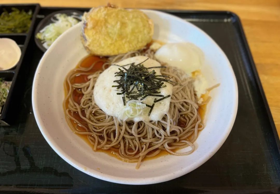 根据浇头的不同,还有月见荞麦(因盛在面上的完整鸡蛋像满月而得名)、油豆腐荞麦、山菜荞麦、萝卜泥荞麦等等。