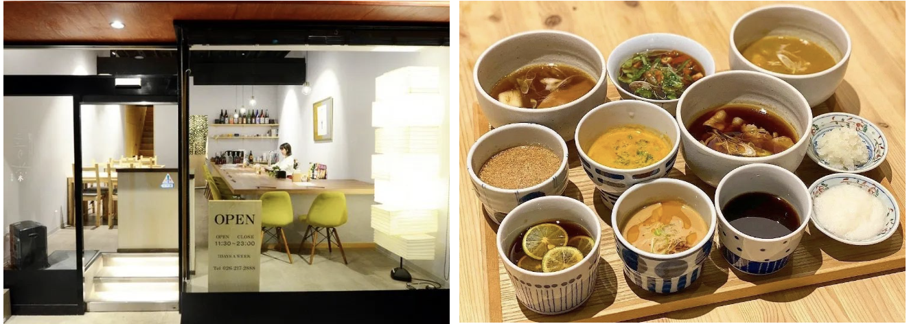 荞麦与日本酒的组合,古已有之。长野产荞麦,也生产极好的清酒。因此,将荞麦与清酒结合的荞麦酒吧,也颇受食客欢迎——它们通常自称So Bar,相当于日语荞麦(soba)和酒吧(bar)的缩写。