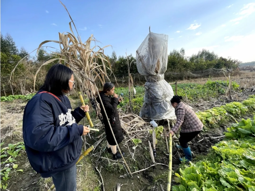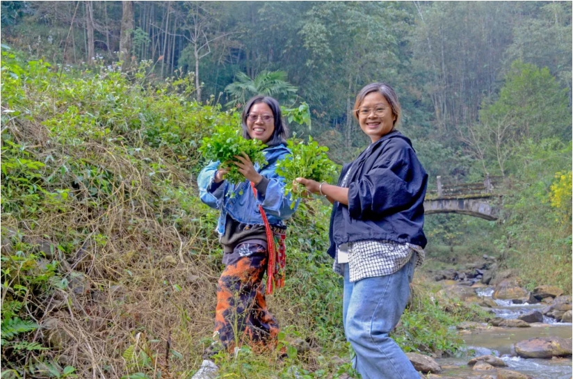 ●2023年冬天作者(左)和巧芸一起巡山摘野菜。