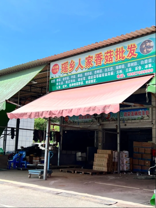 ●粤北农贸批发市场的菌菇批发档口。