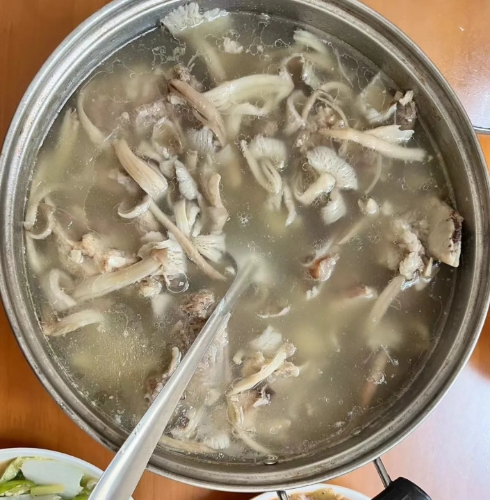 ●巧芸用猪脸为我们熬制的夏至菇汤,味道鲜美。