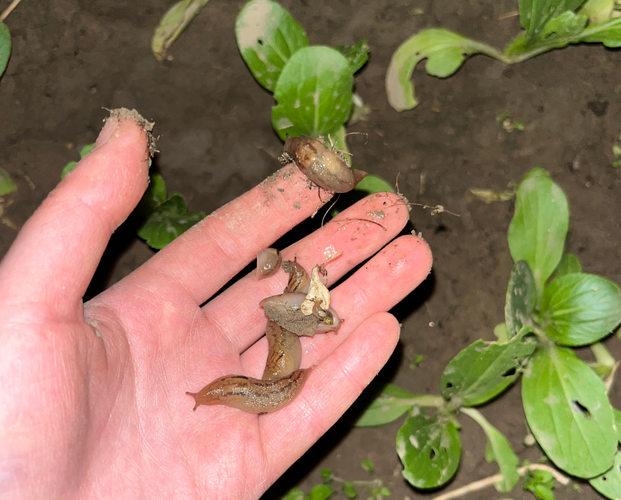 三月的夜晚,蛞蝓在小油菜畦里酣甜畅吃,无需去刻意寻找,随手扒拉两片叶子,就能抓着一群;它们常在阴凉潮湿的晚间出没,贪吃玉米种子里的胚乳,若是不及时抓捕,育苗盆里不多时就只剩一纸空空的种皮。