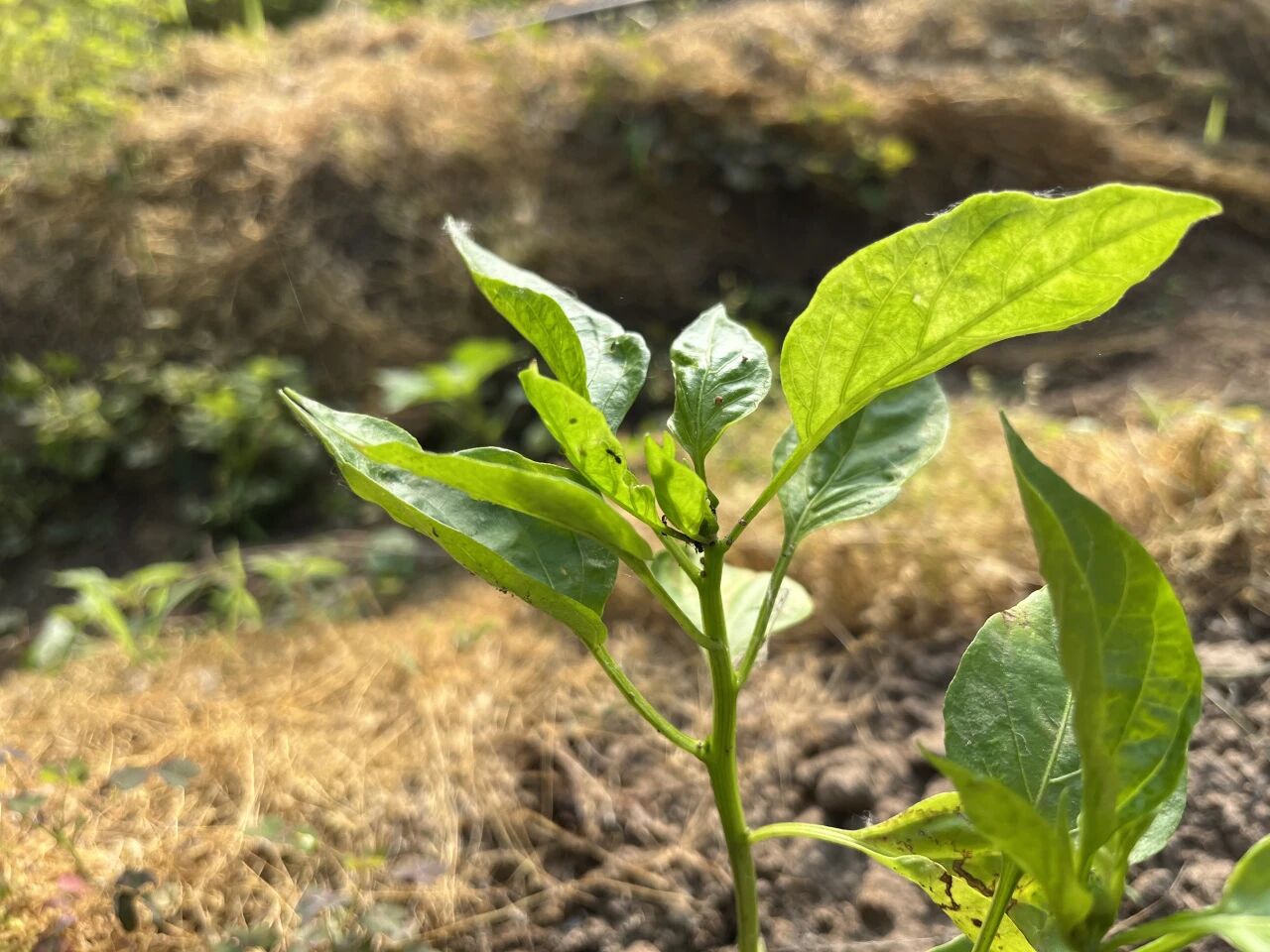 初来乍到时,大棚尽头的这片地荒芜了一个冬天。说荒芜并不准确,因为黄澄澄的繁缕草正长得丰茂。开春不久,我们在同一个地块打垄,定植柿子椒苗,仅仅是在种植穴附近的小圈范围内开辟出一块裸土区,其余土面不多作处理。繁缕草会在这里继续茂密,不仅为土壤起到保水保湿的作用,还能抑制其他野草的生长。