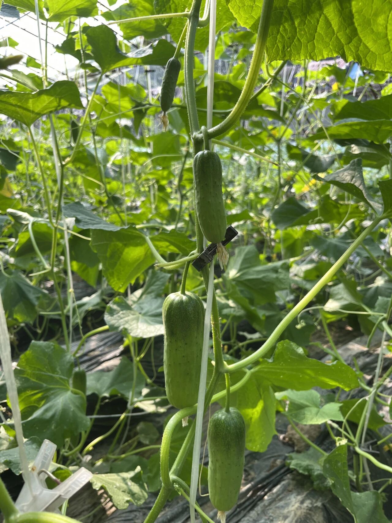 寻常市场里见到的果蔬,只有成熟或未完全成熟两个品相,它们前世今生的秘密仿佛和石猴一样传奇。哪想过有一天,我能看见黄瓜一大家子,个头从小到大在藤上一溜儿排开;看见枣仁儿个头的西瓜宝宝裹在一圈茸毛里;看见番茄尚青涩的果儿、细长的花萼有力地抻向天空,紧实的表皮上一层纤细的绒毛在阳光中富有光泽;看见玉米秸秆长出许多像小脚丫一样的气生根,有力地深入地底吸收养分,向地上器官供给营养;看见玉米小果儿的尖头冒出粉色娇嫩的雌穗儿在风中摇曳……