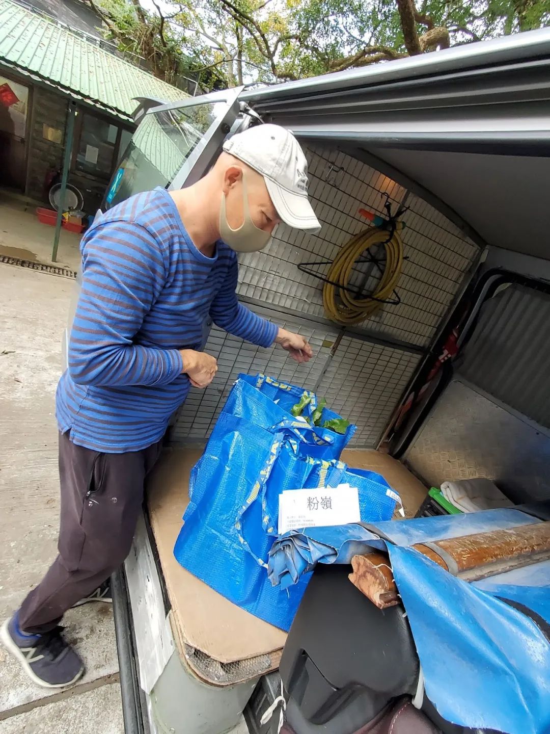 这些菜包来自Queenie和同事们发起的共同购买项目。参与共购的消费者已在一周前填写过线上表单,订好菜包的内容。到了约定的配送日,司机斐哥将会把菜包送到他们手中。