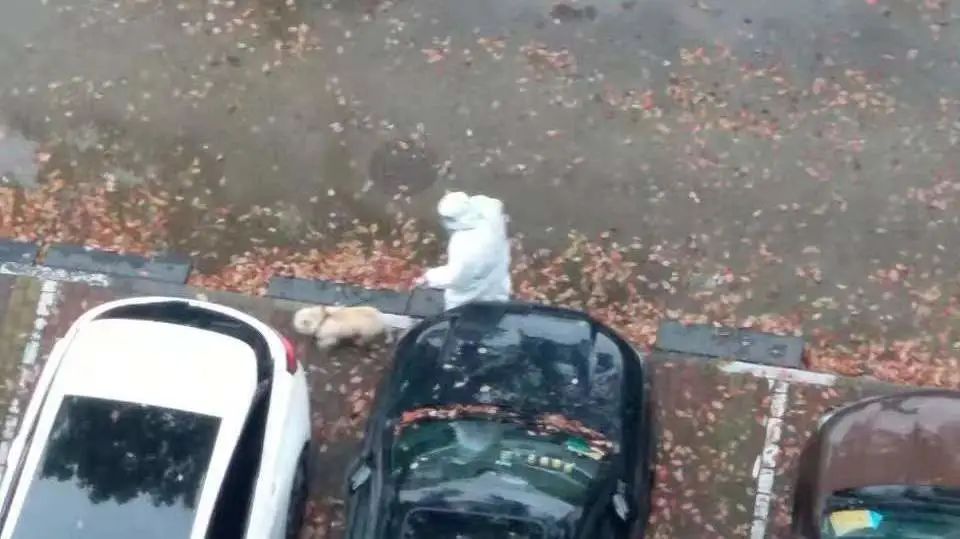 ●邻居阿姨拍到的帮忙遛狗的大白。