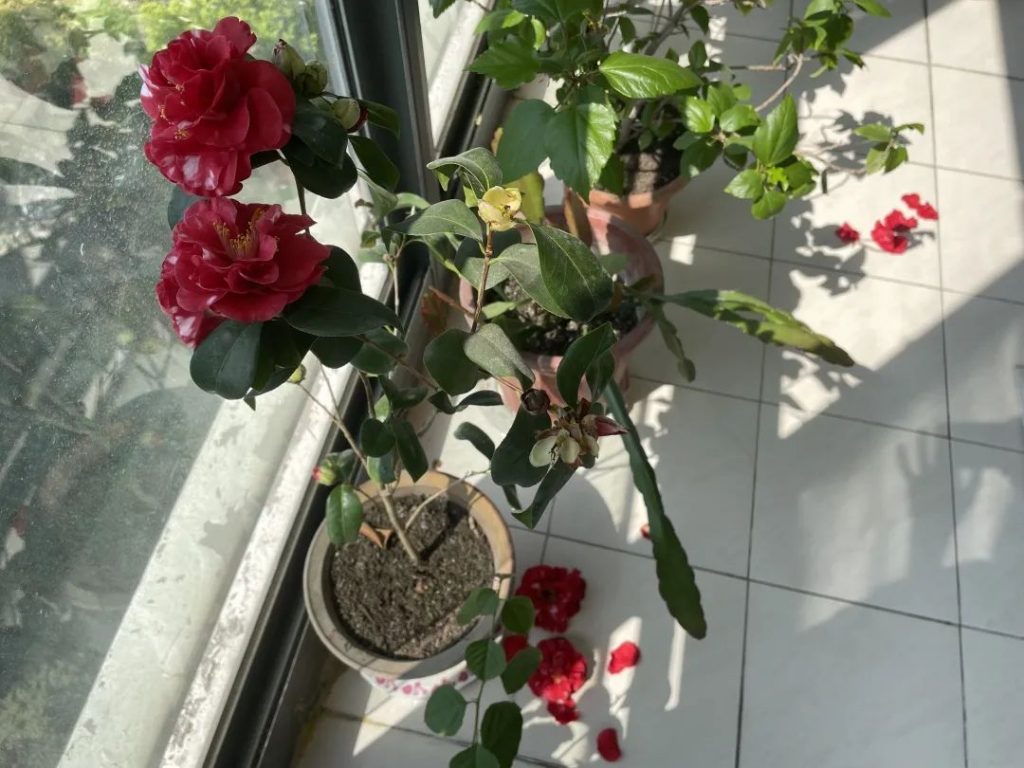 ●阳台上的落花。