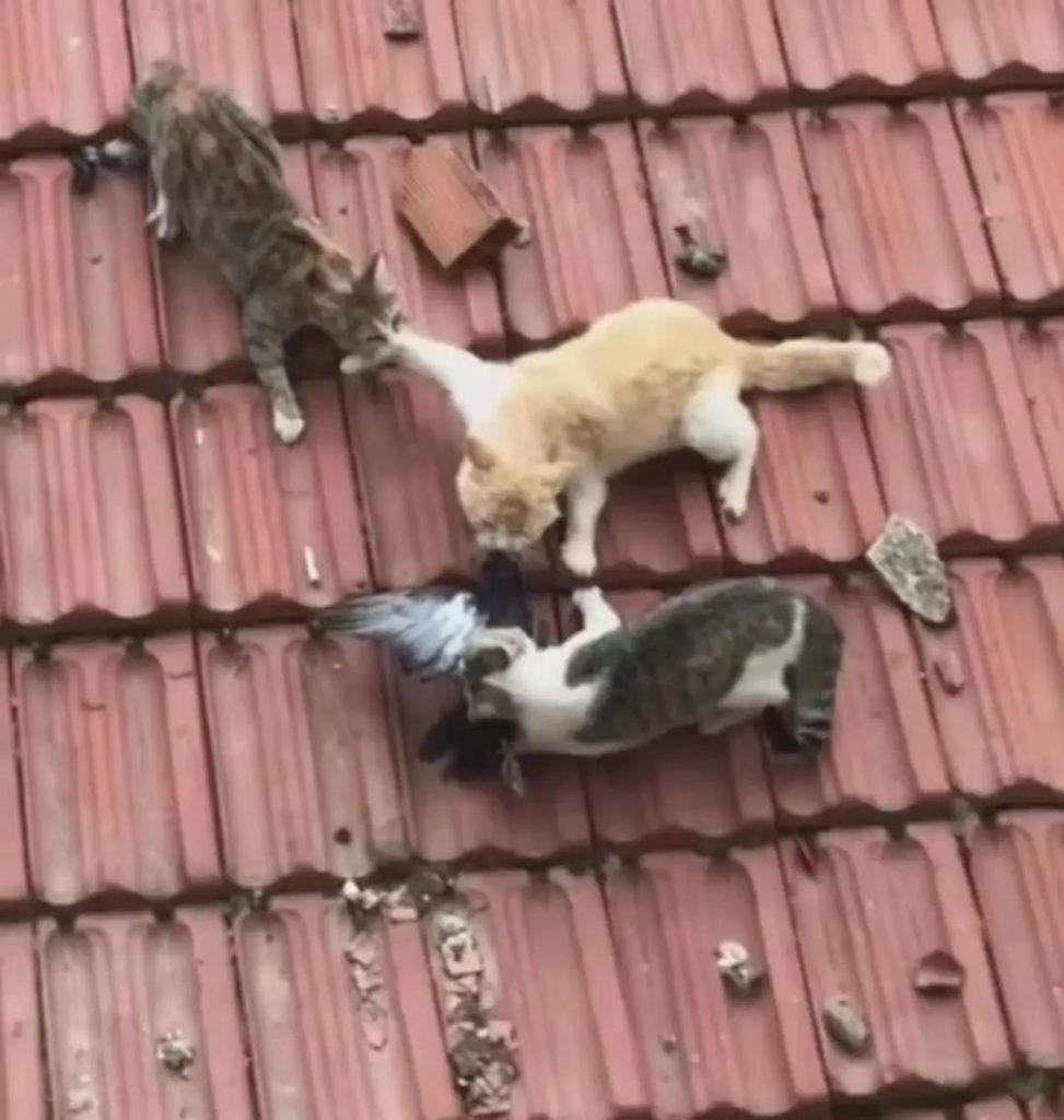 ●朋友拍的野猫抢食图,希望我们小区里的野猫也有吃的。