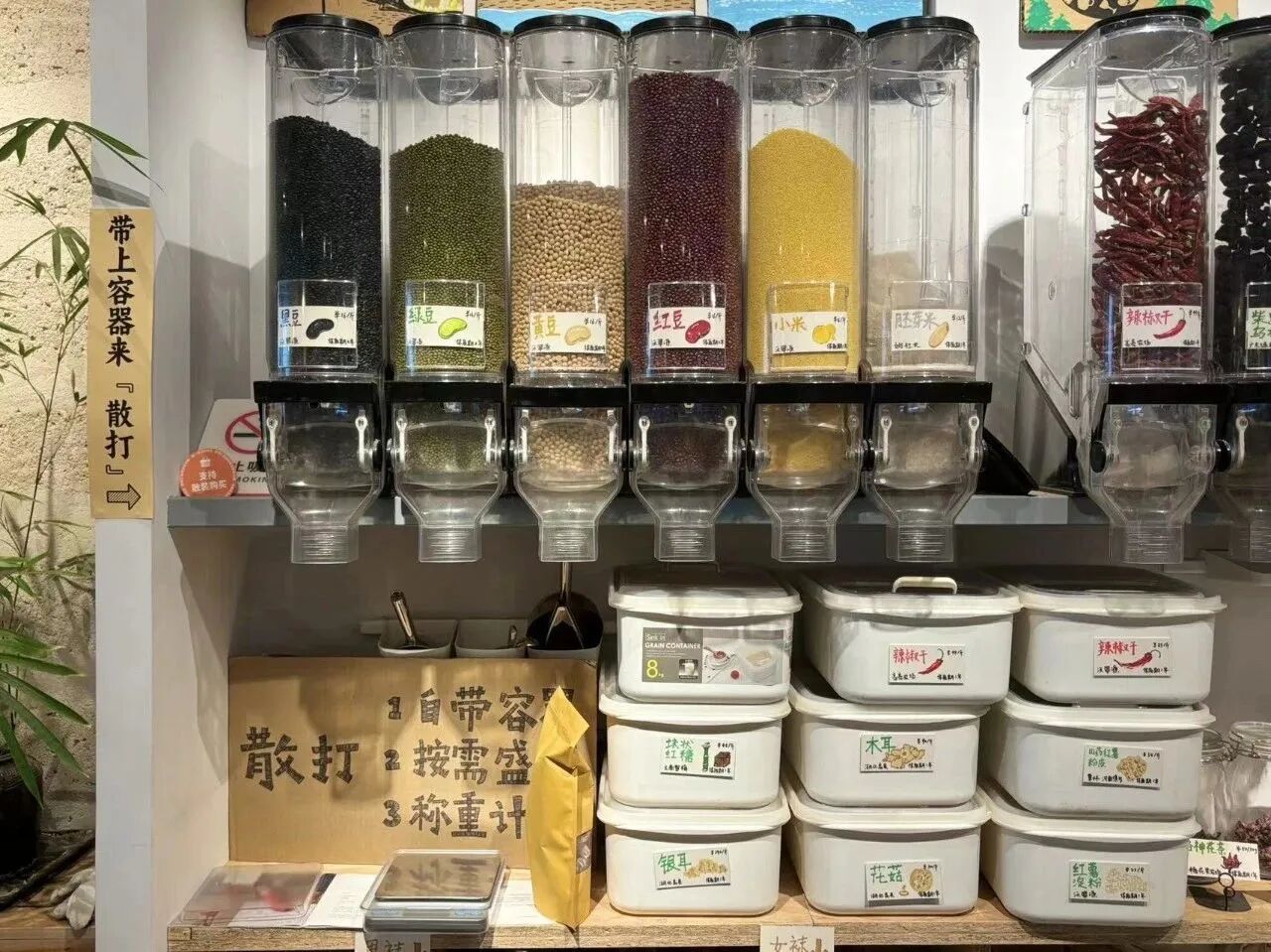 ◉为了倡导减少一次性塑料包装的使用,北京有机农夫市集设置了需要自带容器的“散打专区”。图源:北京有机农夫市集