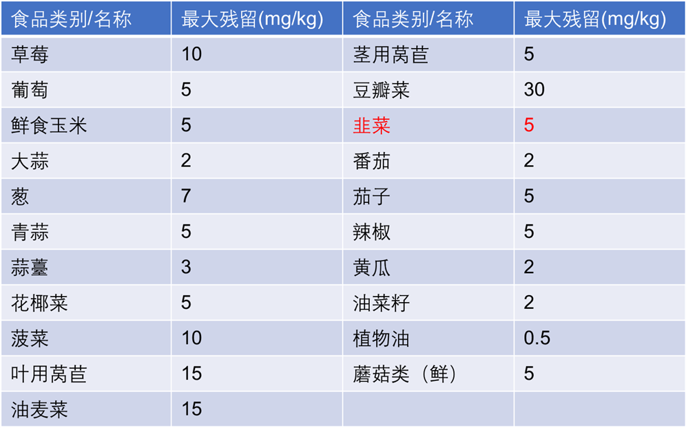 从今年5月11日开始,一项最新食品安全国家标准正式实行,韭菜中的腐霉利残留限量标准从之前的0.2mg/kg上调到5mg/kg,放宽了24倍。
