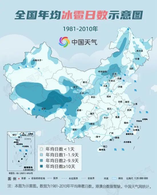 据统计,1961-2019年我国年冰雹日数呈显著减少的趋势,从上世纪60年代的年均1.3天,下降到2010年-2019年的年均0.29天。2021年的一篇论文考察了全球的冰雹发生频率,在不同的区域有升有降。而气候变化未来将如何影响冰雹,仍然存在很大的不确定性。