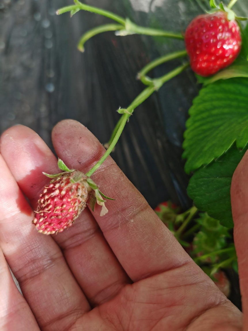 为了提高草莓的品质,最近每天都疏果疏花,比如畸形果、弱果、弱花等。疏掉弱花可减少养分消耗,促使养分优先输送给已经坐果的草莓,这样的草莓果实个头更大、更整齐、更有营养。