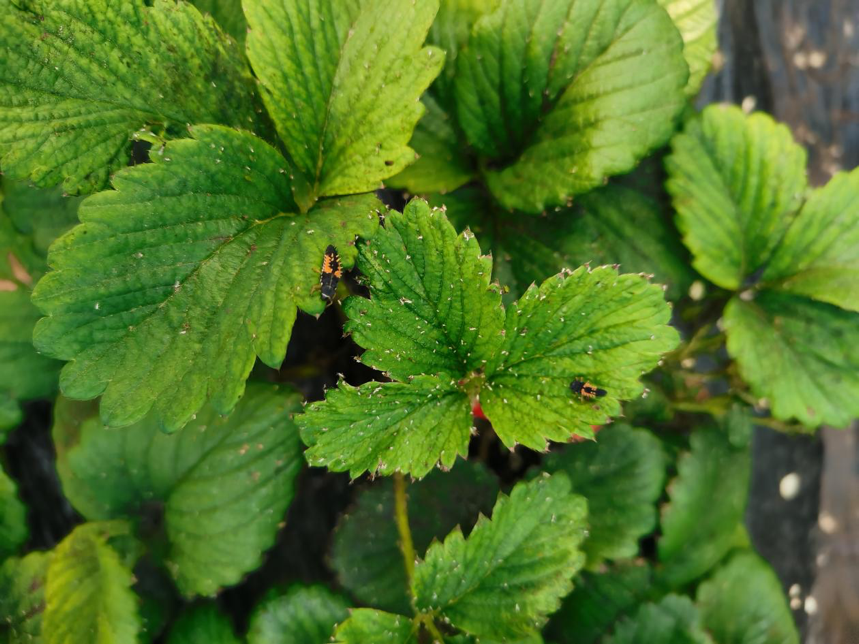 为了控制蚜虫,王鑫投放过异色瓢虫。后来,农场还出现了七星瓢虫。用瓢虫也没法完全控制住蚜虫。王鑫说,开春温度升高后蚜虫会集中爆发,但瓢虫还没来,这时就靠草莓的养分硬扛,一直等到瓢虫出现。