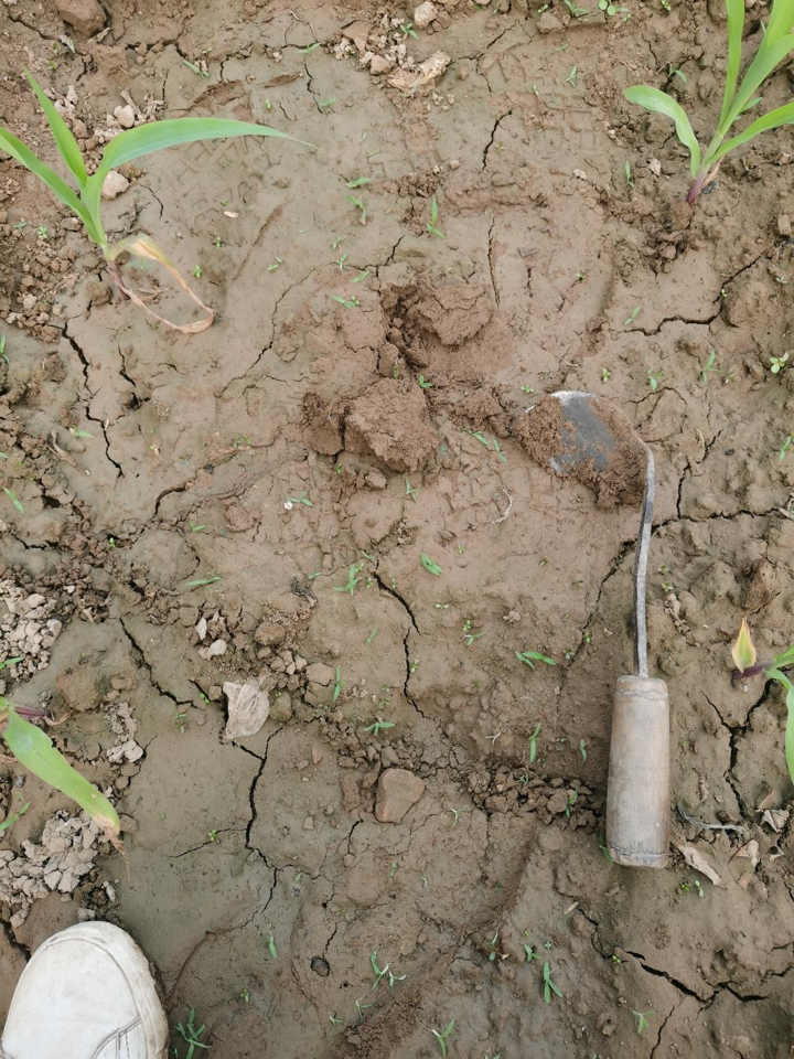 今天主要的任务是给玉米地除草。其实地里的小草几乎看不见,这恰好是锄草的最佳时机。小草好锄,草一旦长大根变深就很难清除。