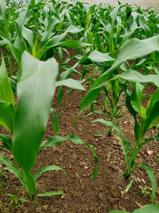这四畦玉米肉眼可见地比别的玉米矮。都是一起种下去的,就因为松土晚了两天,差别明显。得到的教训是:做农业,择时太重要了。