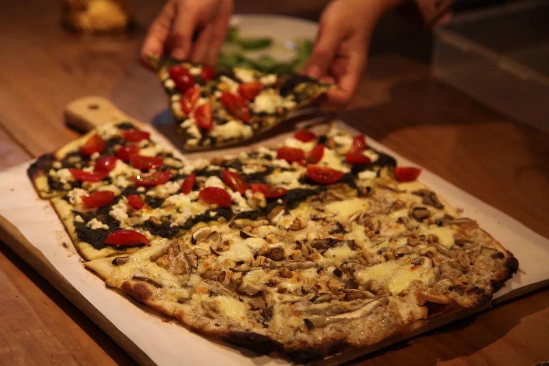 晚上,农民种子网络的伙伴和农大的乔玉辉教授也来探班,大家和集友、农友们一起吃了小农餐桌的奶酪薄饼自助,当然,食材还是来自集室的生态小农。
