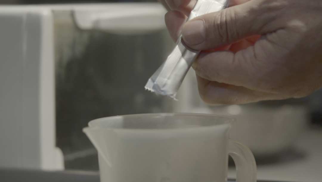 再加入数滴凝乳酶,迅速搅拌,然后再静置半小时,这时候牛奶中的乳清就会分离出来。