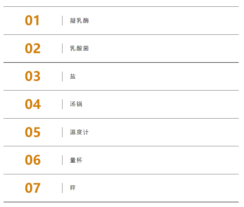 高温会让牛奶蛋白质变性,市售的超高温灭菌奶无法用凝乳酶直接凝固牛奶,所以一定要选择72度巴氏灭菌鲜奶。有生命的鲜奶在口感和营养都更胜一筹。