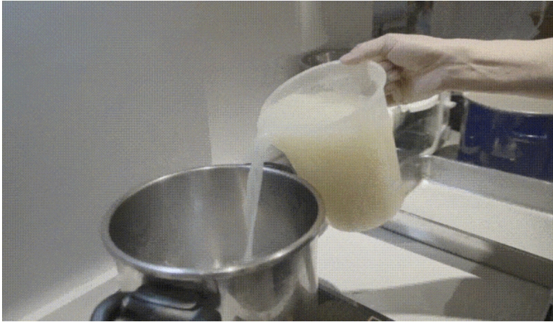 让我们继续加热制作马苏里拉剩下的乳清水。