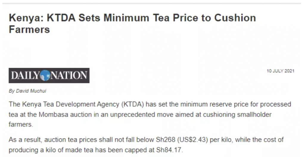去年疫情期间,蒙巴萨茶叶拍卖市场茶叶价格出现严重下跌,而KTDA坚持维护小农的利益,主张上调茶叶成交价格,一度导致KTDA茶叶在市场停止成交。可见在自由商业环境下,小农户合作及赋权后产生了不可忽视的力量,正如KTDA在其产品涨价的声明中说到:“如果损害了农民的利益和生计,维护所谓的繁荣市场毫无意义。”