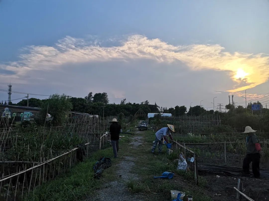 ●在农场劳作的师傅阿姨们,戴着草帽,远远地也看不出年龄。
