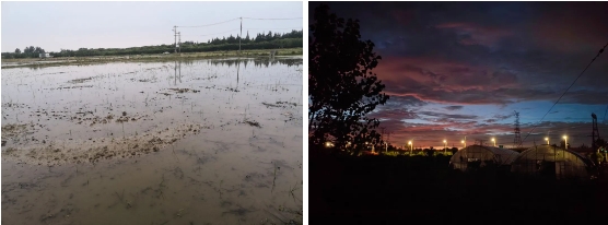 ●农场的一边是水田,一边是现代公路与高架铁路。