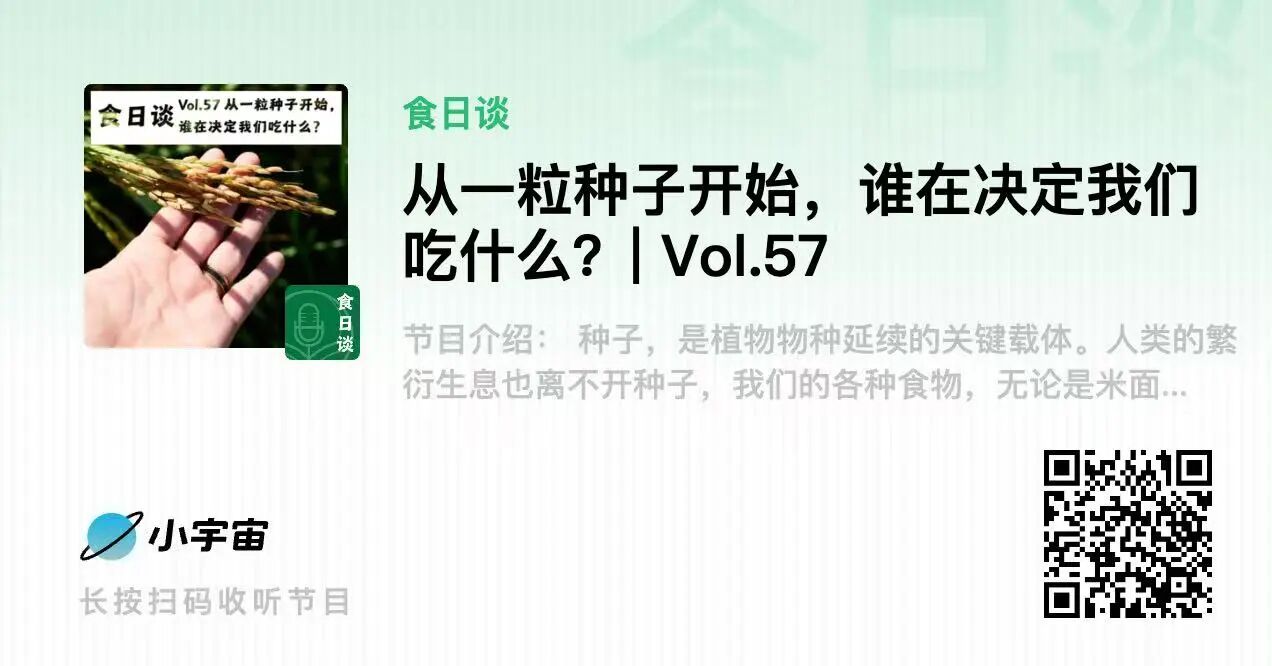 如果你对此也感兴趣,欢迎收听这期关于土地、粮食、多样性,以及“谁拥有生产资料”的真实对谈。愿每一颗种子被看见,也愿选择种植与选择吃的自由被保留。