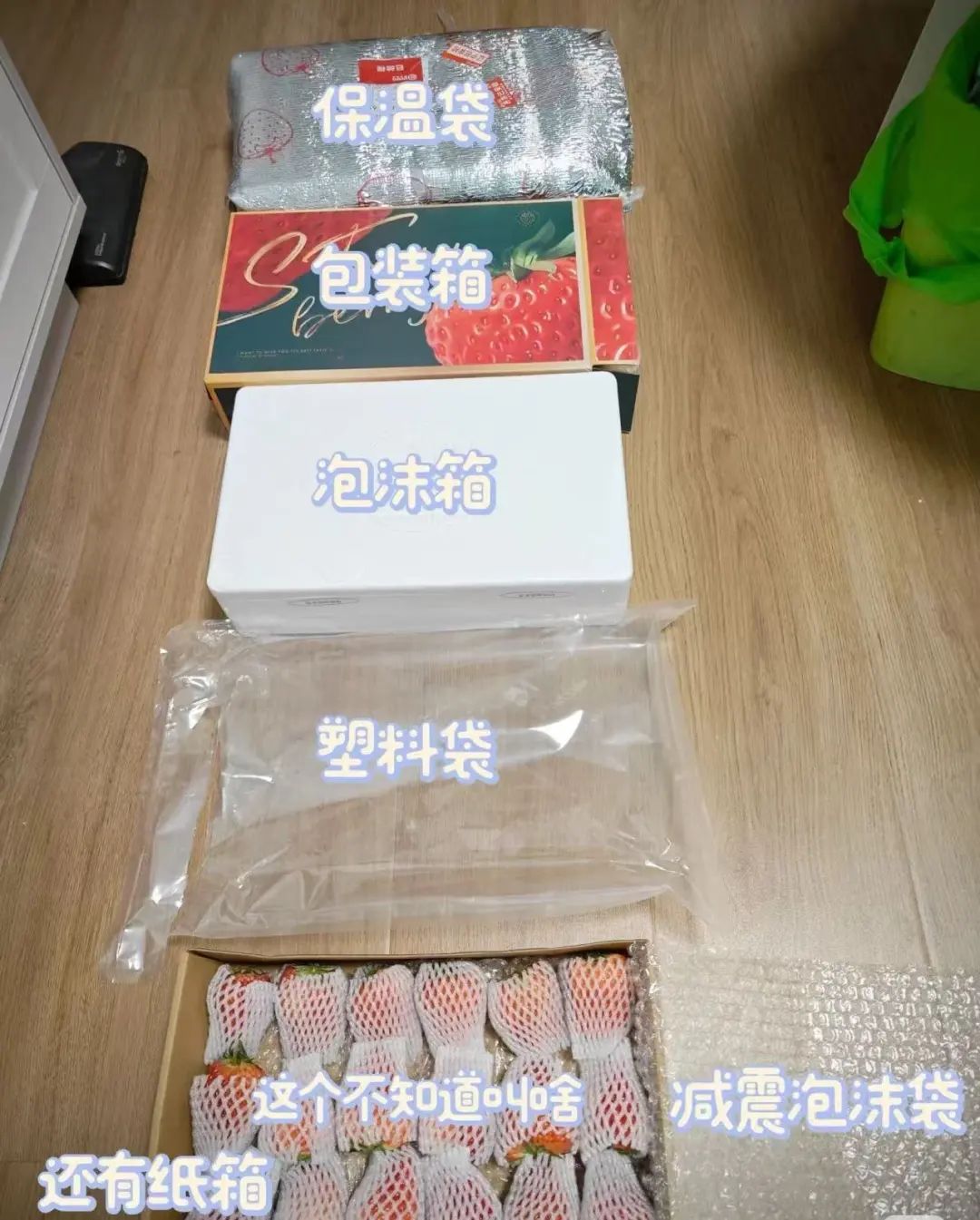 @白日梦:在某直播间买的草莓,刚才到货拆包装,拆出来六层,堆了一地。能理解草莓怕碰怕磕,但是这个包装层是不是太多了?草莓很好吃,但是自己拆包装拆出一种特别不环保的罪恶感,以后不在网上买这种需要小件运输的草莓了。
