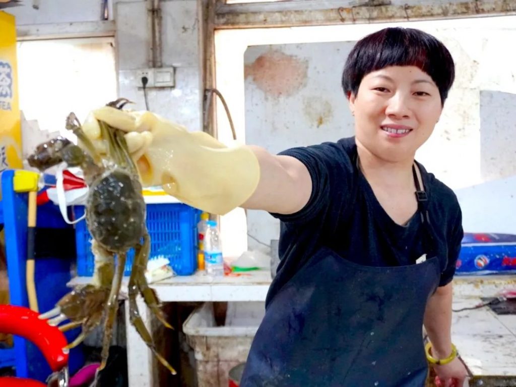 一开始想拍孙姐又不好意思,净怼着她盆里的螃蟹拍。没想到姐姐帅气捏起一只螃蟹,冲着我说‘没事,拍嘛’,于是我就拍啦。把照片反馈给姐姐的时候,她也很喜欢。