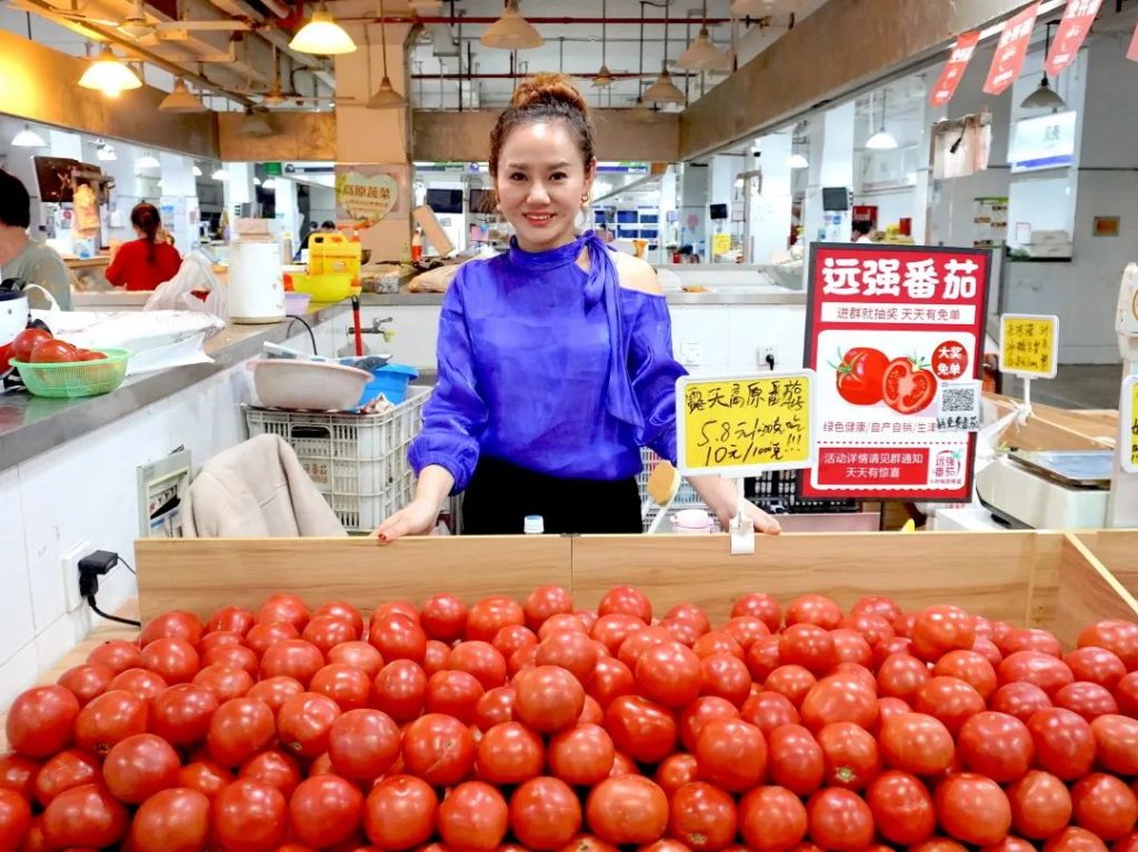 我还没上小学时,澳华菜场里也有一位漂亮的番茄阿姨。每次去她的摊位,她都会给我一个又大又红的番茄。照片里的郁姐立马让我想到了番茄阿姨,亲切感不寻自来。不禁有个疑问 :卖番茄的摊主都长得这么有气质吗?