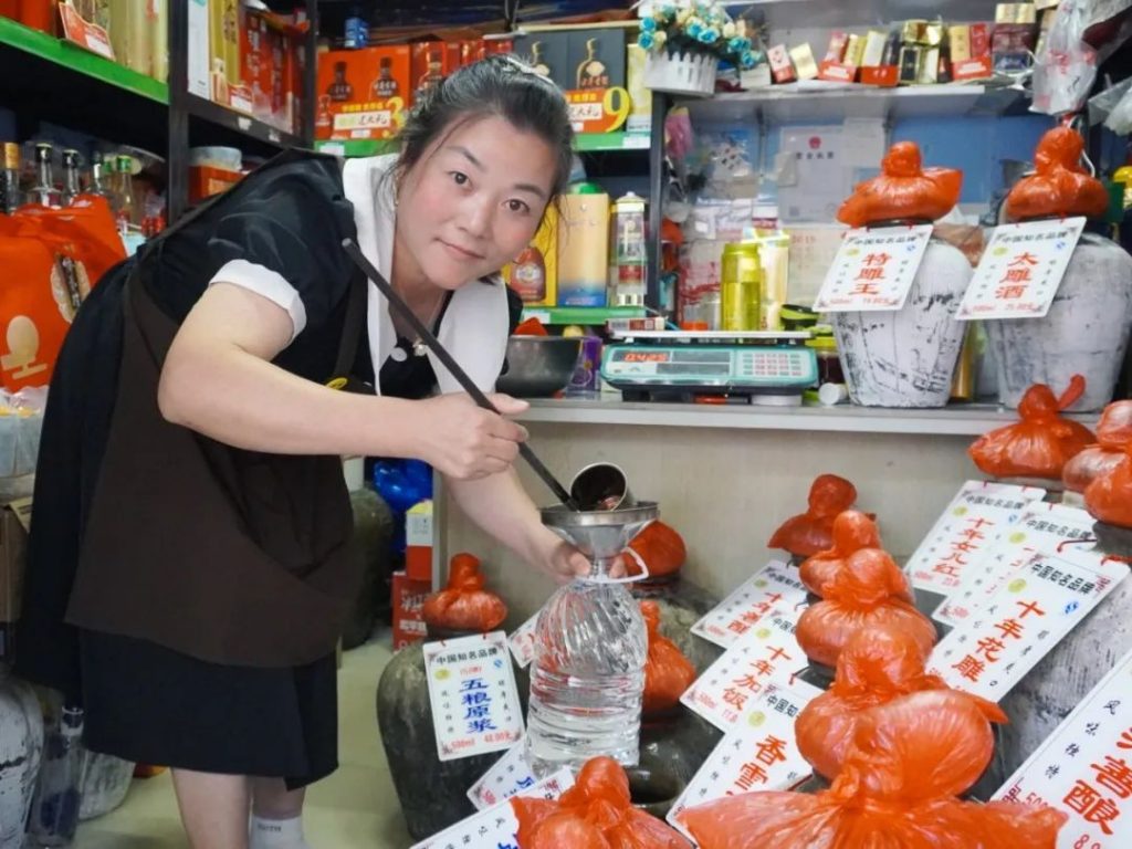 姐姐是我在这个菜场拍的第三位摊主。看到我帮她的邻居们拍完后,她招手让我去店里,让我也给她来一张,我就屁颠屁颠地去了。这时正好来了一位顾客,于是就很自然地留下了舀酒的画面。对着镜头,姐姐真是一点都不胆怯!