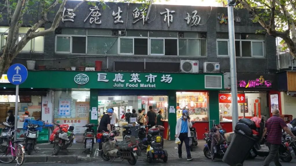 这里附近曾是“上海第一大”露天菜场,从金陵路口到茂名路,摊位间几乎没有空隙。据统计,露天菜场的占地面积曾达8000多平方米。清晨天还没亮,菜场就开始嘈杂起来,叫卖声此起彼伏,直到晚上十点多。虽然现在的巨鹿路菜场面积不大,但各种菜类也一应俱全,同时也是上海外国人出现频率最高的菜市场之一。
