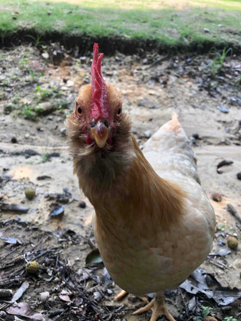 鸡的移动在朴门永续里也得到重视:让鸡和鸡群移动起来!让它们在春天吃越冬害虫,夏天吃熟透的落果,秋天在谷物地里捡拾遗穗,扒拉表土还会让土地更加松散。也许我们应当学习如何以鸡的视角俯视大地。在外走久了,鸡也有了自己的生活。它们喜欢到处拉屎,吃完蓝莓以后的蓝黑色鸡屎在太阳下被照亮,我们时常会觉得这也是一种蓝莓回归土壤的方式。偶尔我们会在蓝莓树下发现内壁光滑的沙坑,坑底有一些落叶,周围还有鸡在徘徊,我们想这是鸡刨下的坑,落叶上曾经掉过一颗蛋。