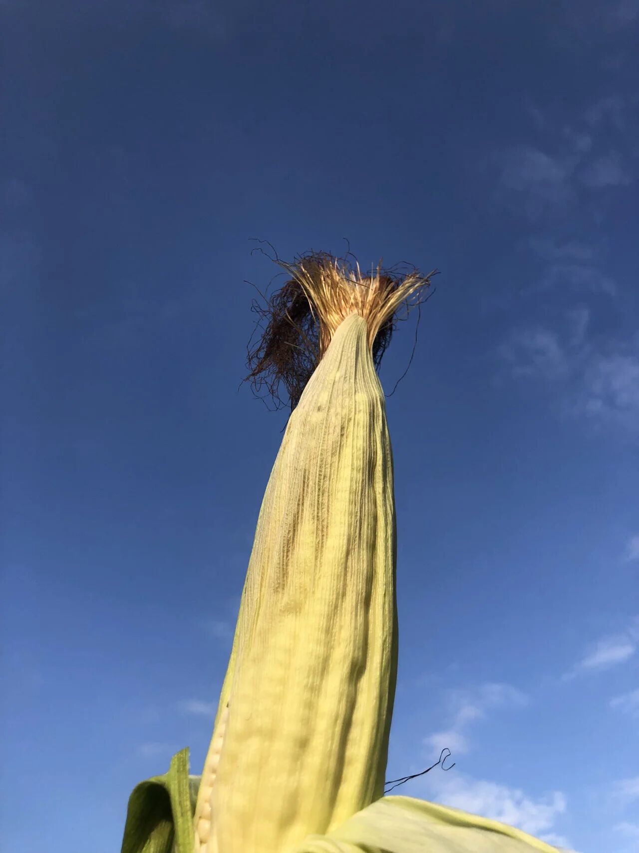 在城市的视角里,玉米总是粒粒金黄饱满地呈现。我从未想过它也会残缺,也会被风雨塑造:玉米杆顶端的雄穗,需借风力晃动将花粉洒向下方的雌穗。雌穗的花丝承接粉末,每一根孕育一粒籽实。然而,连日疯狂的雨水浸透了玉米须,阻断了这场授粉。
