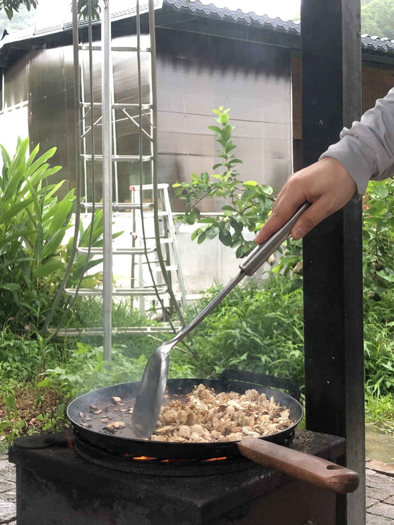 今年,他又计划使用酵素农法——利用发酵产生的酶和复合菌群来保护、滋养果树。效果如何尚未可知,一切仍在摸索。闲暇之余,鹏程还讲过一个与万物“对话”的故事。这里一度饱受白蚁之苦,从荔枝树干一路蔓延到厨房角落。一个安静的午后,鹏程决心敞开心扉,诚恳地向白蚁们诉说着近况、困扰,还有彼此共存的界限。白蚁们依旧奔忙,他讪讪作罢。然而次日,主干上的白蚁竟减少了许多;再过几日,白蚁们从主干上撤离了,就连它们筑好的巢都抛下了。在飘散的言语里,那片寻求尊重和理解的意念,似乎真的传递了过去。