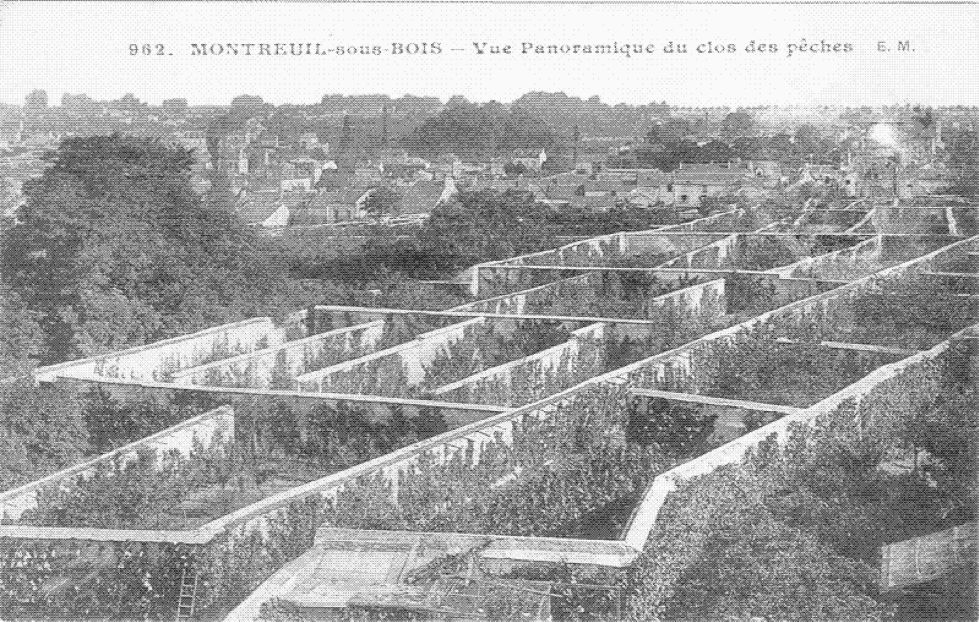 蒙特勒伊于17世纪建立,在19世纪70年代,也就是果墙概念最为兴盛的时候,那里曾有超过600公里的果墙。拔地而起如迷宫般的墙壁占地面积达300公顷,足以使外来人感到眼花缭乱。普鲁士军队在1870年围困巴黎时,都对蒙特勒伊采取了绕道而行的策略。