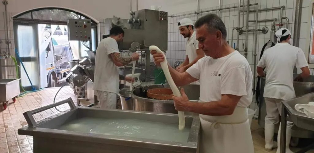 奶酪是最古老的食物创新之一,这个地区也正以正宗的水牛奶酪闻名。凌晨四点,我们在黑暗中出发去一家著名奶酪店的养殖场参观学习。这里养着上百头水牛和奶牛。我们到时一头小牛刚刚降生,身上血迹未干就已经会走会跑,人类新生儿的生存能力实在相形见绌。