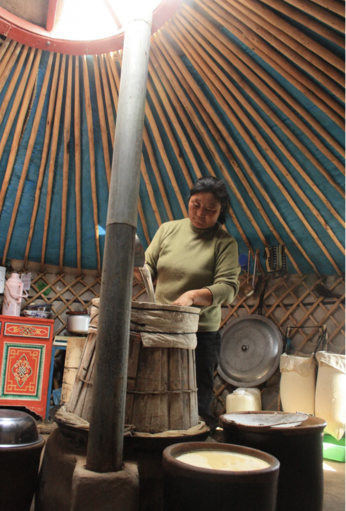 我到牧区时间不长,就能讲述奶制品制作的全过程,还知道好几种分离奶油的方法。一开始我不以为意,后来发现很多男同事、甚至男性牧民都说不清楚这件事。因为做奶食品的主要是妇女,我很容易和她们聊起来,平时也会和她们一起做家务劳动,所以能很快了解清楚。