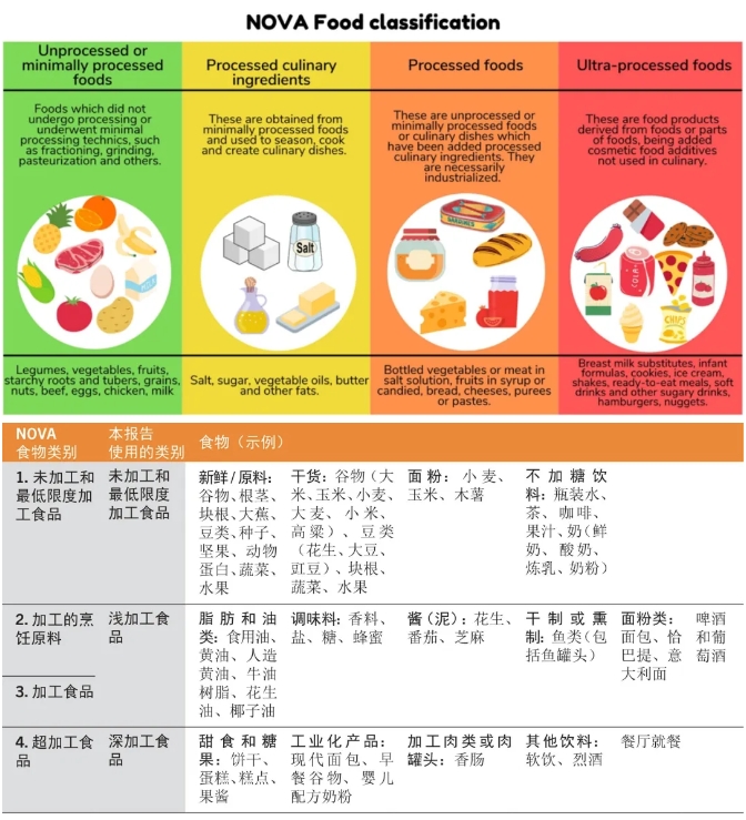 2009年,巴西营养学家 Carlos Monteiro首次提出NOVA分类系统,将食品按照加工程度分为四类,最后一类便是超加工食品(UPF)。