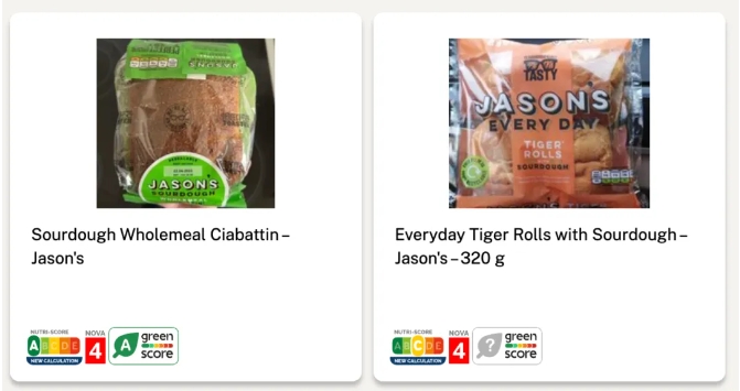 比如Jason’s旗下“全麦恰巴丁面包”和“老虎卷”被开放式食品数据库Open Food Facts归类为“超加工食品”,就在消费者群体中引起了一些争议。