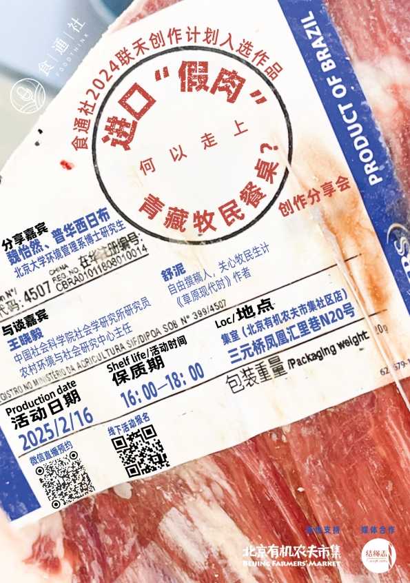 2月16日,食通社就联禾创作计划入选作品《“假肉”驱逐真肉》组织了一场线下分享会,邀请作者和与谈嘉宾围绕进口肉的冲击和传统畜牧业出路等议题,进行了热烈探讨。“牧民的草膘牦牛到底是卖得太贵还是太便宜了?”中国社会科学院社会学研究所研究员王晓毅从这个看似矛盾的现象切入,引导读者从市场逻辑和农村社区的逻辑拆解问题,思考在市场化大潮中,如何将牛羊肉“回嵌”进牧民的生活。以下是晓毅老师的发言整理。欢迎关注食通社视频号观看回放。添加食通社(ID:foodthinkcn),备注“假肉”,进入分享会交流群。
