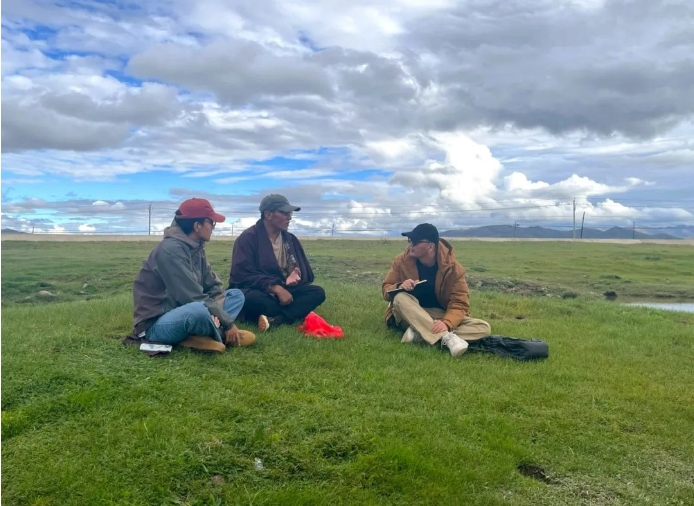 ●《“假肉”驱逐真肉》作者普华西日布(右一)在访谈牧民。